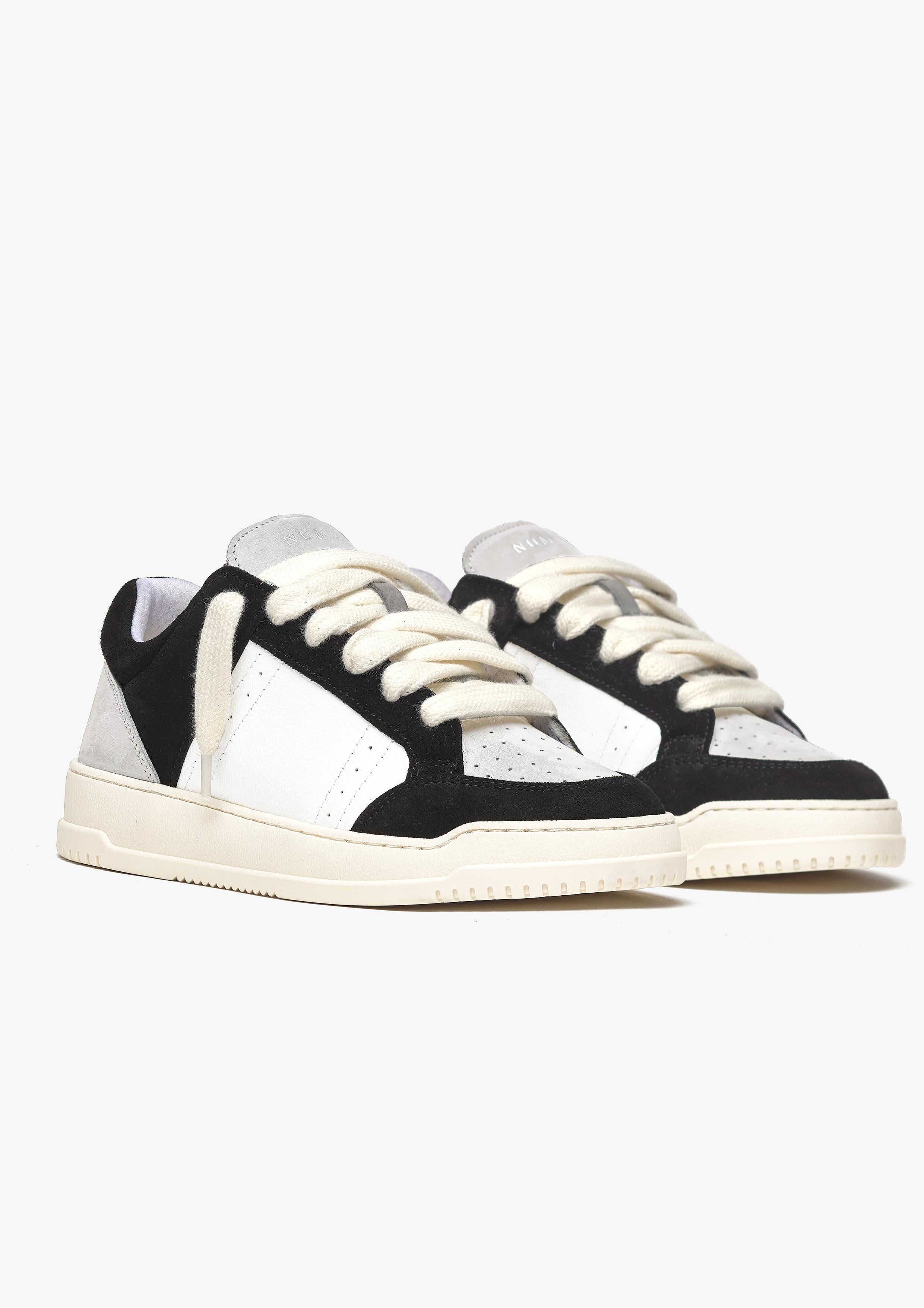 La sneaker Arena allie luxe quotidien et esthétique sportive. Le coloris Alaska présente un mélange de nubuck noir et gris italien ainsi que des empiècements latéraux en cuir grainé blanc. Le tout est complété par des lacets blancs de 10 mm. L'intérieur de la sneaker est doté d'une doublure de col offrant un confort inégalé. La tige repose parfaitement sur notre semelle beige personnalisée bicolore. La semelle elle-même présente le logo Numeriś en relief à l'arrière et est gravée sur la semelle inférieure.