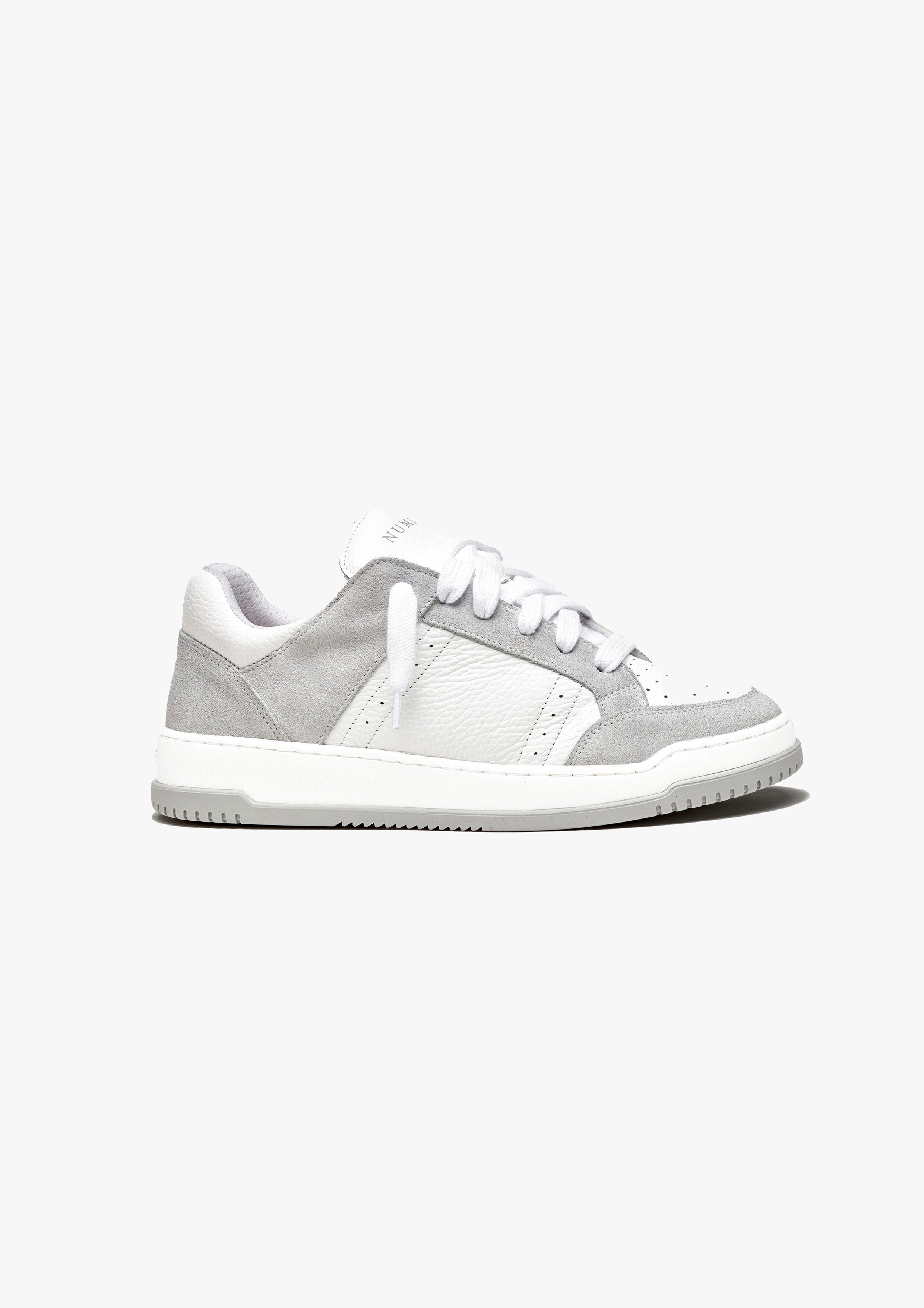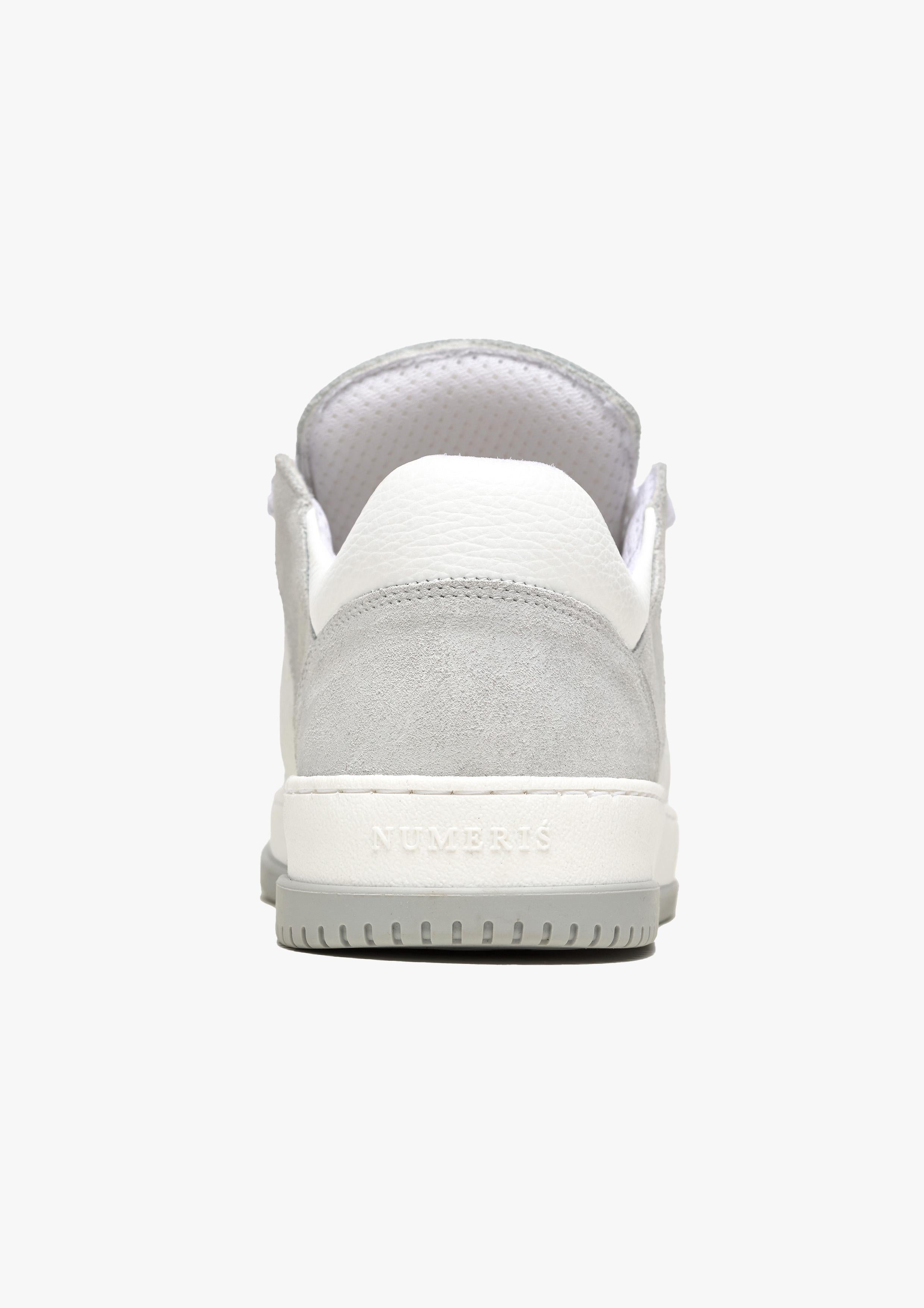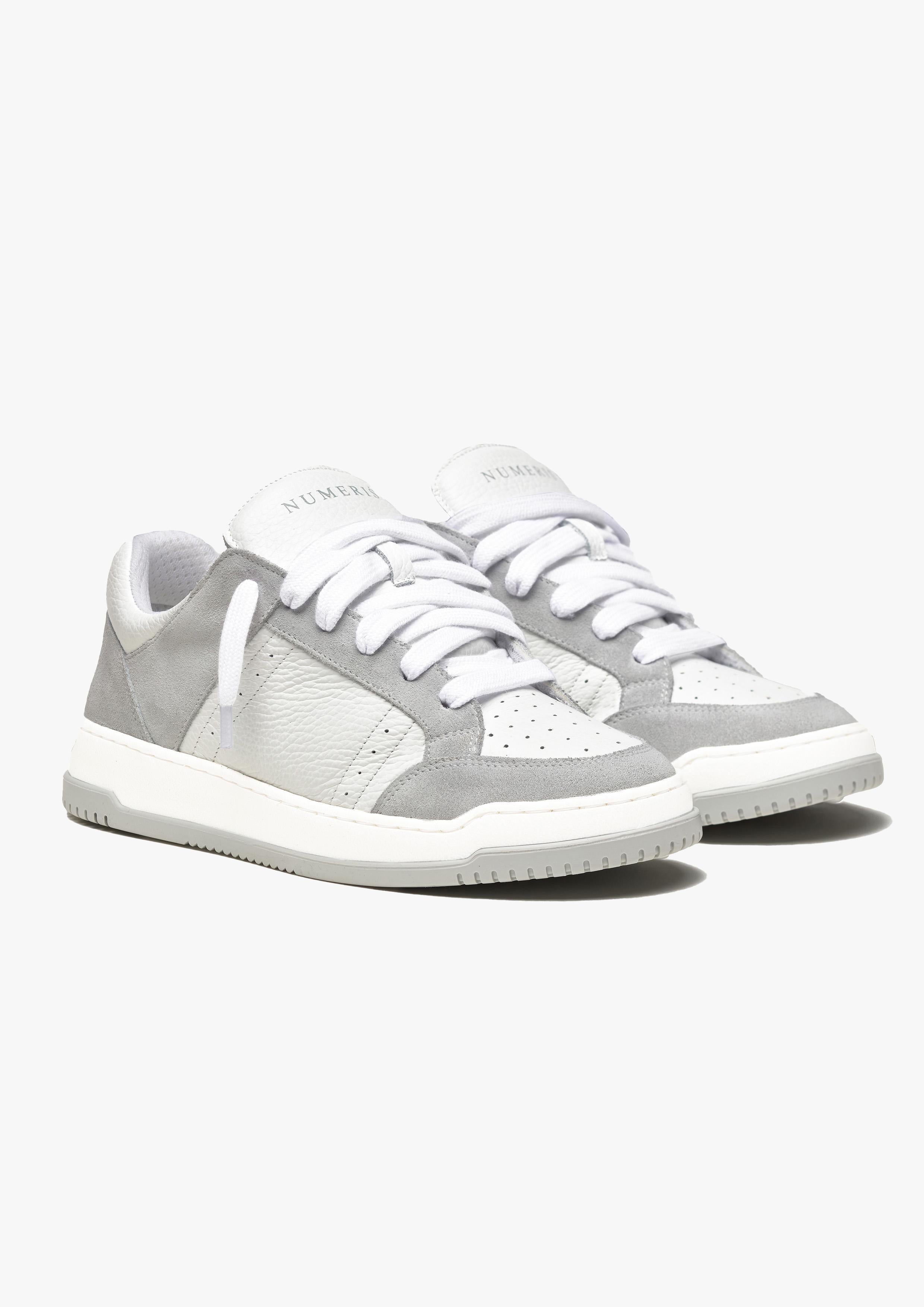 La sneaker Arena allie luxe quotidien et esthétique sportswear. La couleur ardoise présente un mélange de daim gris clair italien ainsi que des panneaux latéraux en cuir blanc texturé. Le tout est complété par des lacets blancs de 10 mm. L'intérieur de la chaussure dispose d'un revêtement de col offrant un confort inégalé. La tige repose parfaitement sur notre semelle personnalisée bicolore blanche et grise. La semelle elle-même arbore le logo Numeriś embossé à l'arrière et est gravé sur la semelle intérieure.