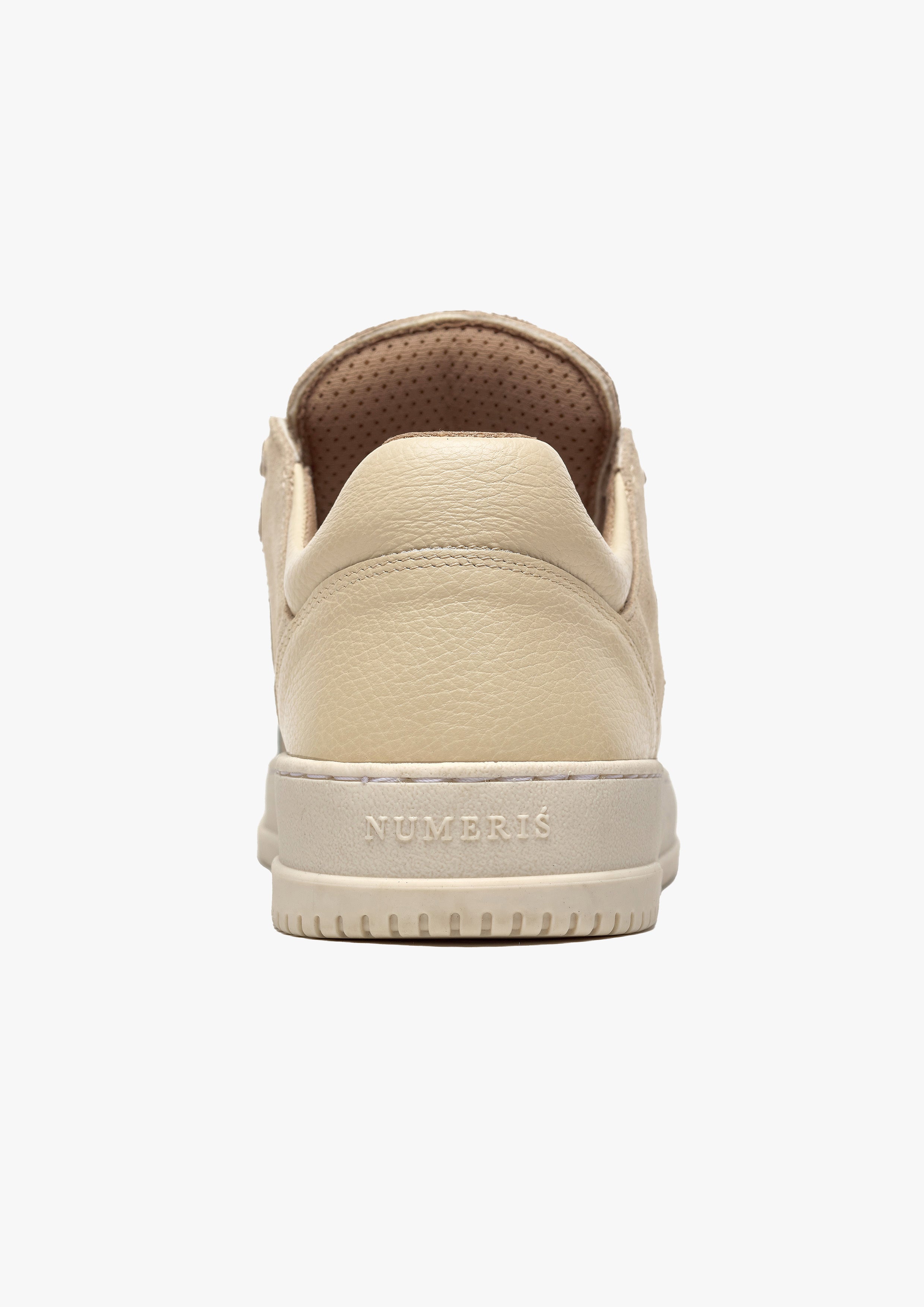 La sneaker Arena Chunky allie luxe quotidien et esthétique sportive. Le coloris Oat présente une tige entièrement en cuir blanc agrémentée de lacets blancs de 20 mm. L'intérieur de la basket est doté d'une doublure de col offrant un confort inégalé. La tige repose parfaitement sur notre semelle personnalisée bicolore grise et blanche. La semelle elle-même présente le logo Numeriś en relief à l'arrière et est gravée sur la semelle inférieure.