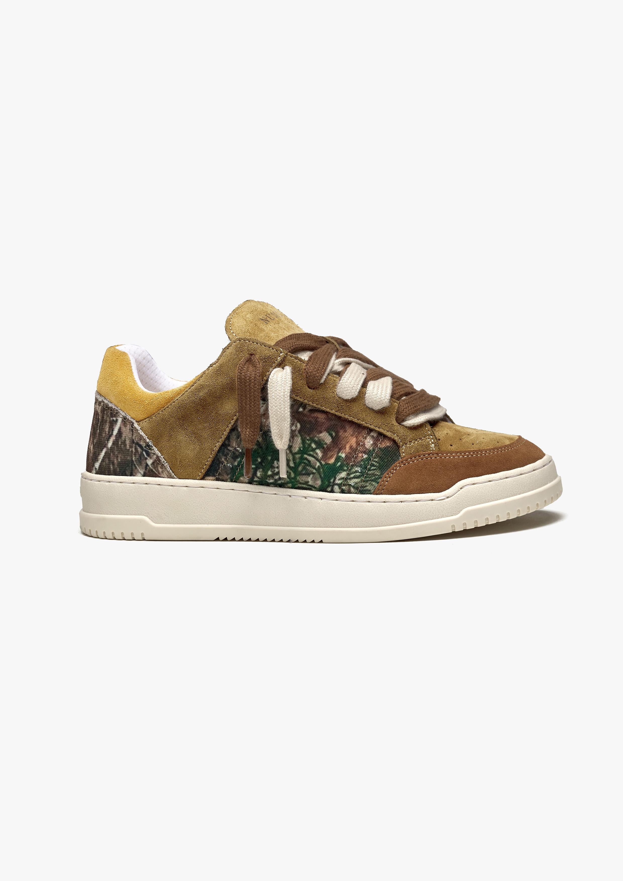 Arena - Hunter : Une fusion parfaite de palettes de couleurs inspirées de l'hiver et notre impression camouflage forestière exclusive, conçue en interne exclusivement pour Numeriś. Notre design innovant à double lacet, avec un lacet blanc cassé entrelacé avec un lacet marron pour imiter la texture naturelle de l'écorce des arbres. L'intérieur de la chaussure présente un revêtement de col offrant un confort inégalé. La tige repose parfaitement sur notre semelle blanche cassée sur mesure. La semelle elle-même arbore le logo de Numeriś embossé à l'arrière et est gravé sur la semelle intérieure.