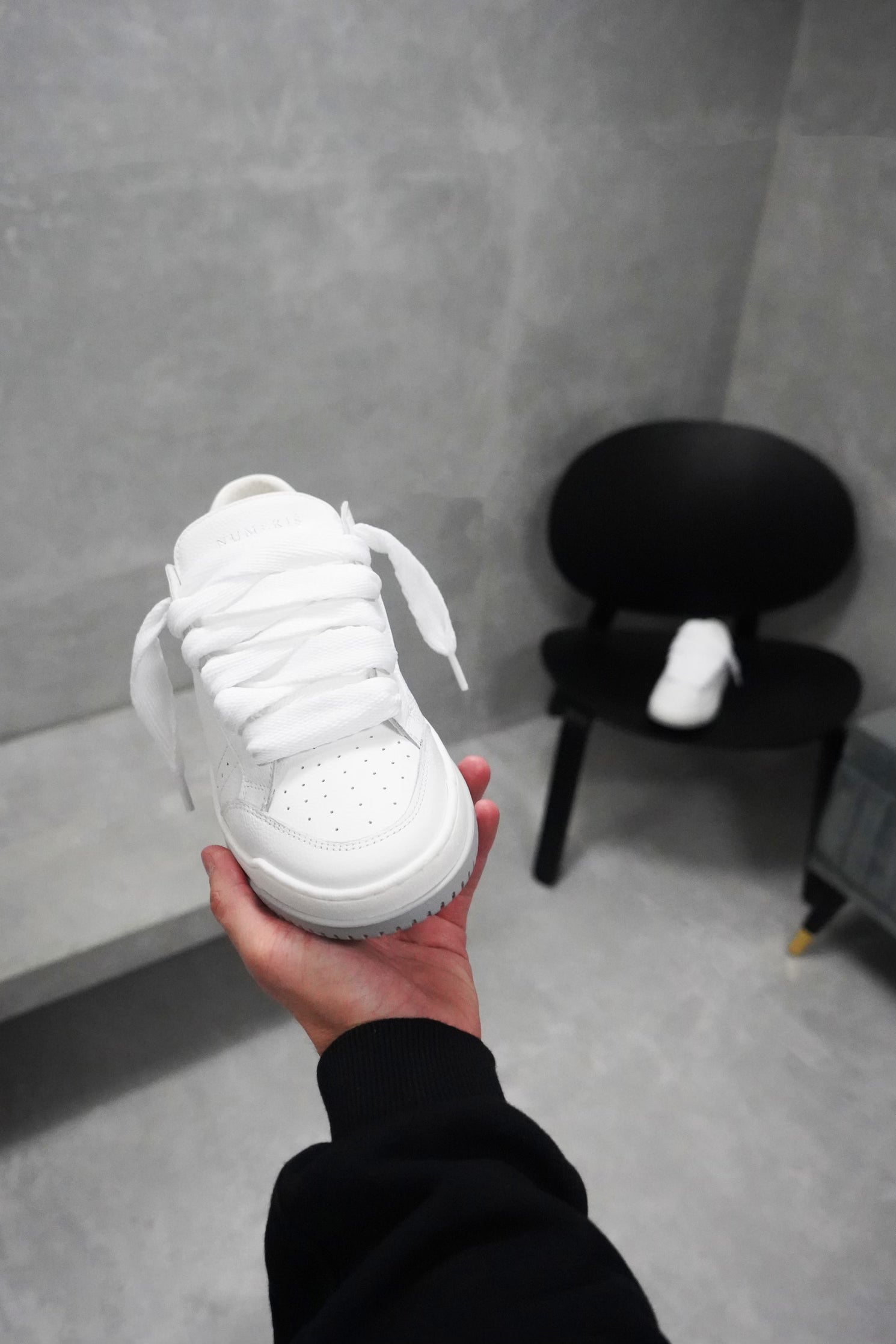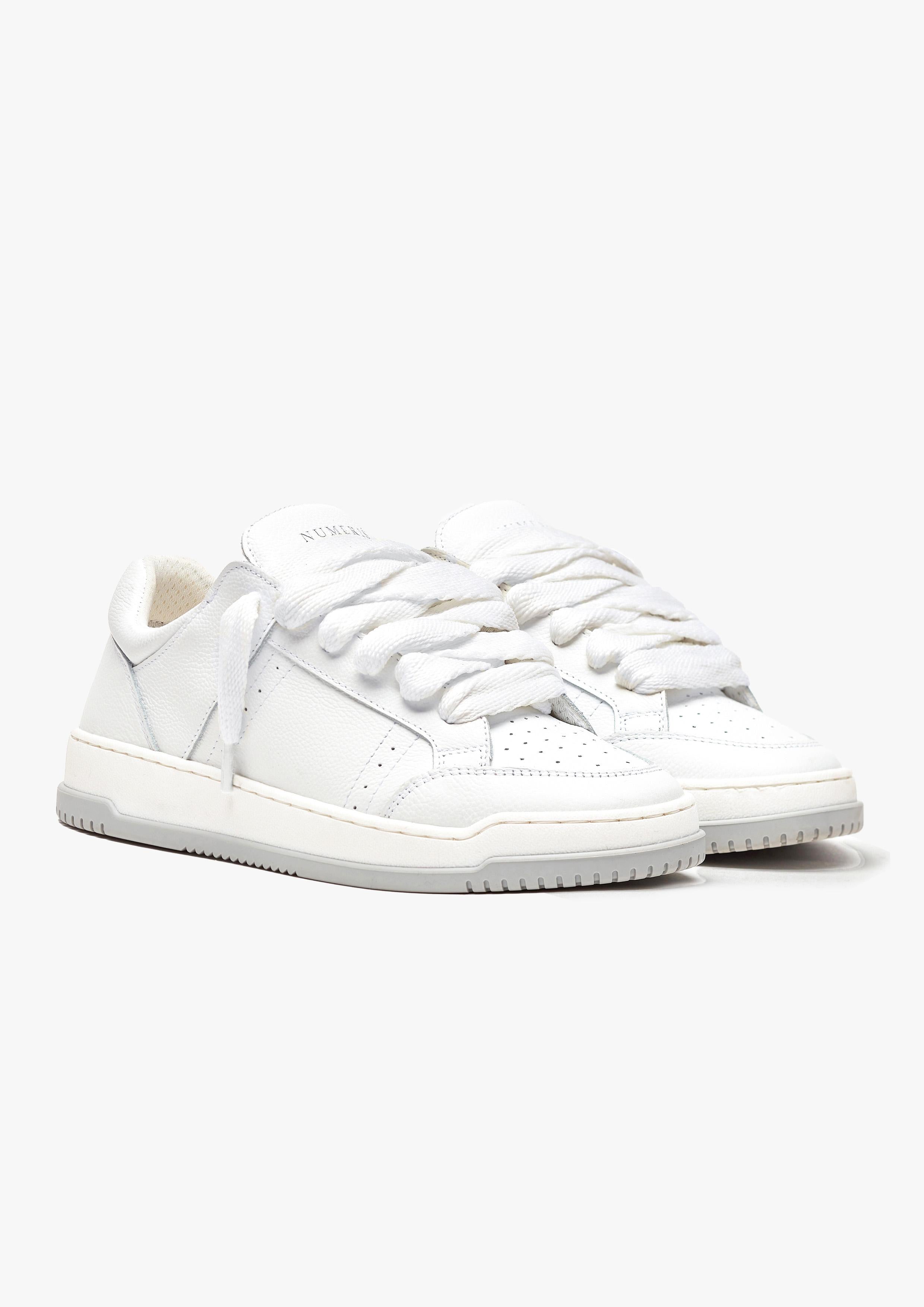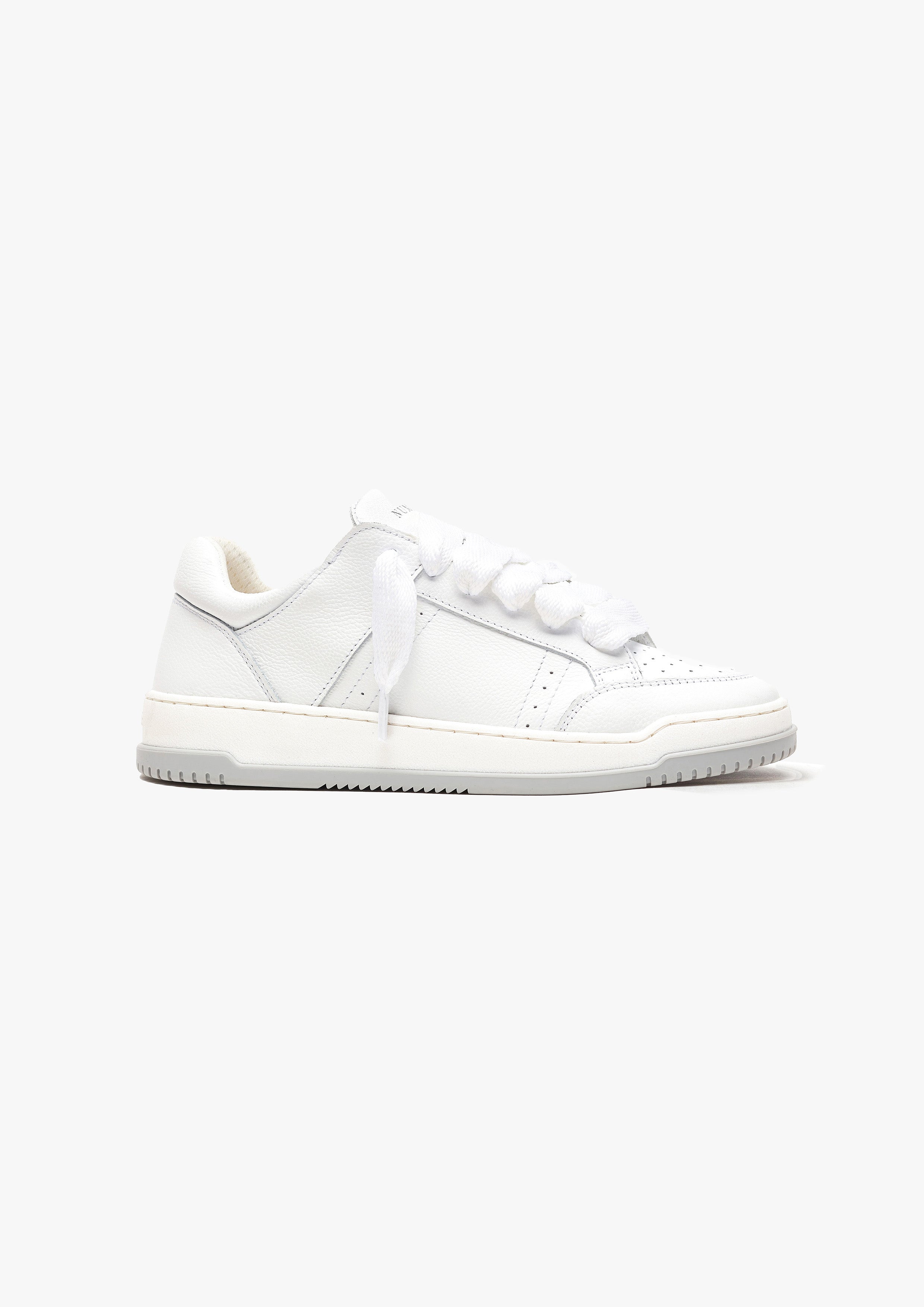 La sneaker Arena Chunky combine luxe quotidien et esthétique sportswear. La couleur Milk présente un dessus en cuir entièrement blanc, complété par des lacets blancs de 20 mm. L'intérieur de la chaussure est doté d'un rembourrage au niveau du col, offrant un confort inégalé. Le dessus repose parfaitement sur notre semelle personnalisée bicolore grise et blanche. La semelle elle-même arbore le logo Numeriś embossé à l'arrière et est gravé sur la semelle intérieure.