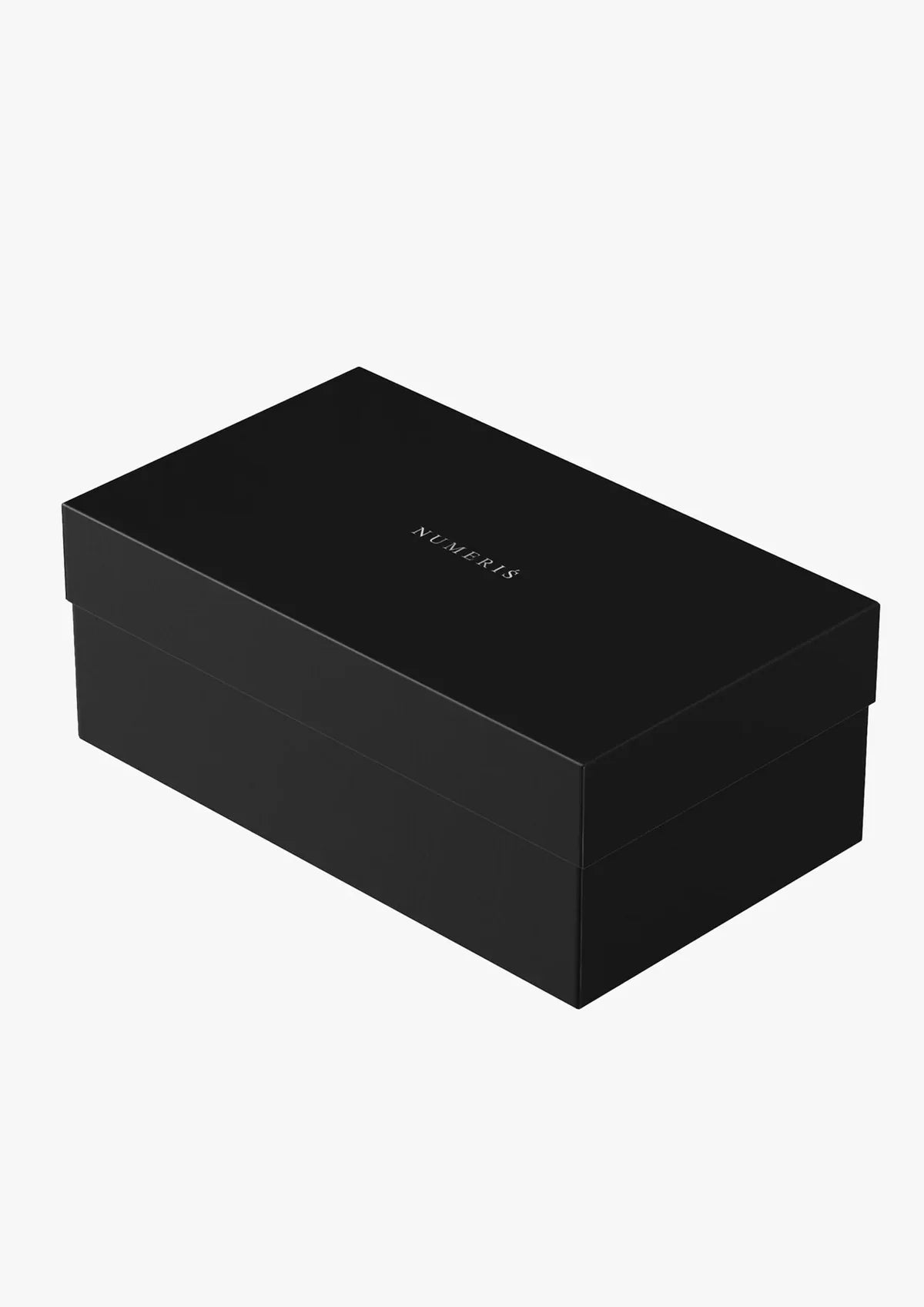 La punta in pelle bianca pieno fiore, impeccabile e iconica, completa questa caratteristica distintiva, aggiungendo un tocco di raffinatezza al design. All’interno, la sneaker è dotata di una fodera imbottita al colletto che migliora l’esperienza complessiva di utilizzo. I dettagli finali includono il nostro marchio distintivo Numeriś sul tallone, accompagnato dallo slogan che definisce questo stile: «Design is thinking made visual».