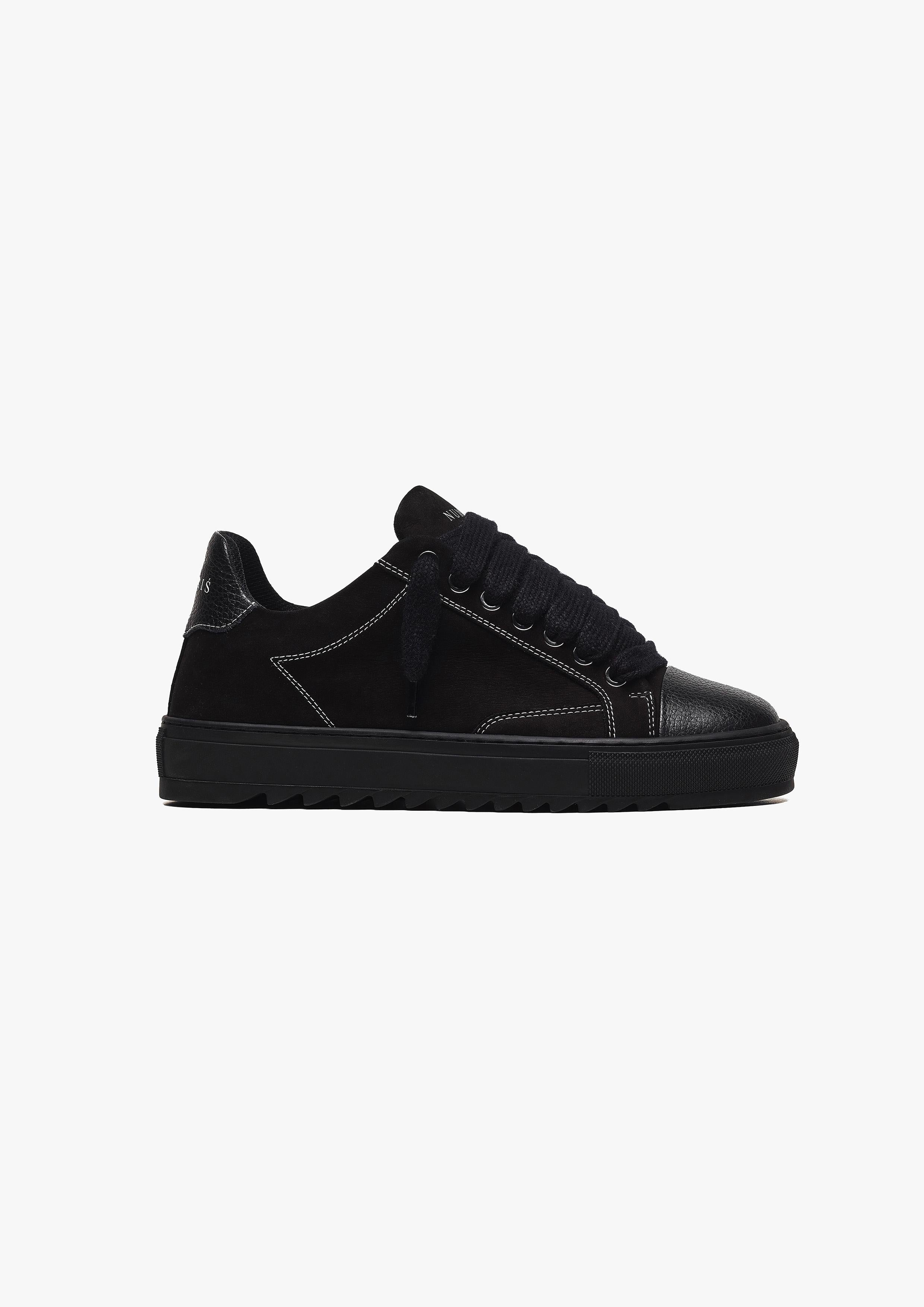 Ogni cucitura e dettaglio è stato meticolosamente progettato in un atelier parigino. La versione Carbone presenta una tomaia in nabuk nero di alta qualità con cuciture bianche nette, rifinita dal nostro puntale in pelle nera a grana marcata, il tutto poggiato sulla nostra esclusiva suola in gomma complessa nera. L’interno del trainer è dotato di un collarino in tessuto nero che offre un comfort impareggiabile. I dettagli finali includono il nostro marchio Numeriś sul tallone e sulla linguetta della scarpa.