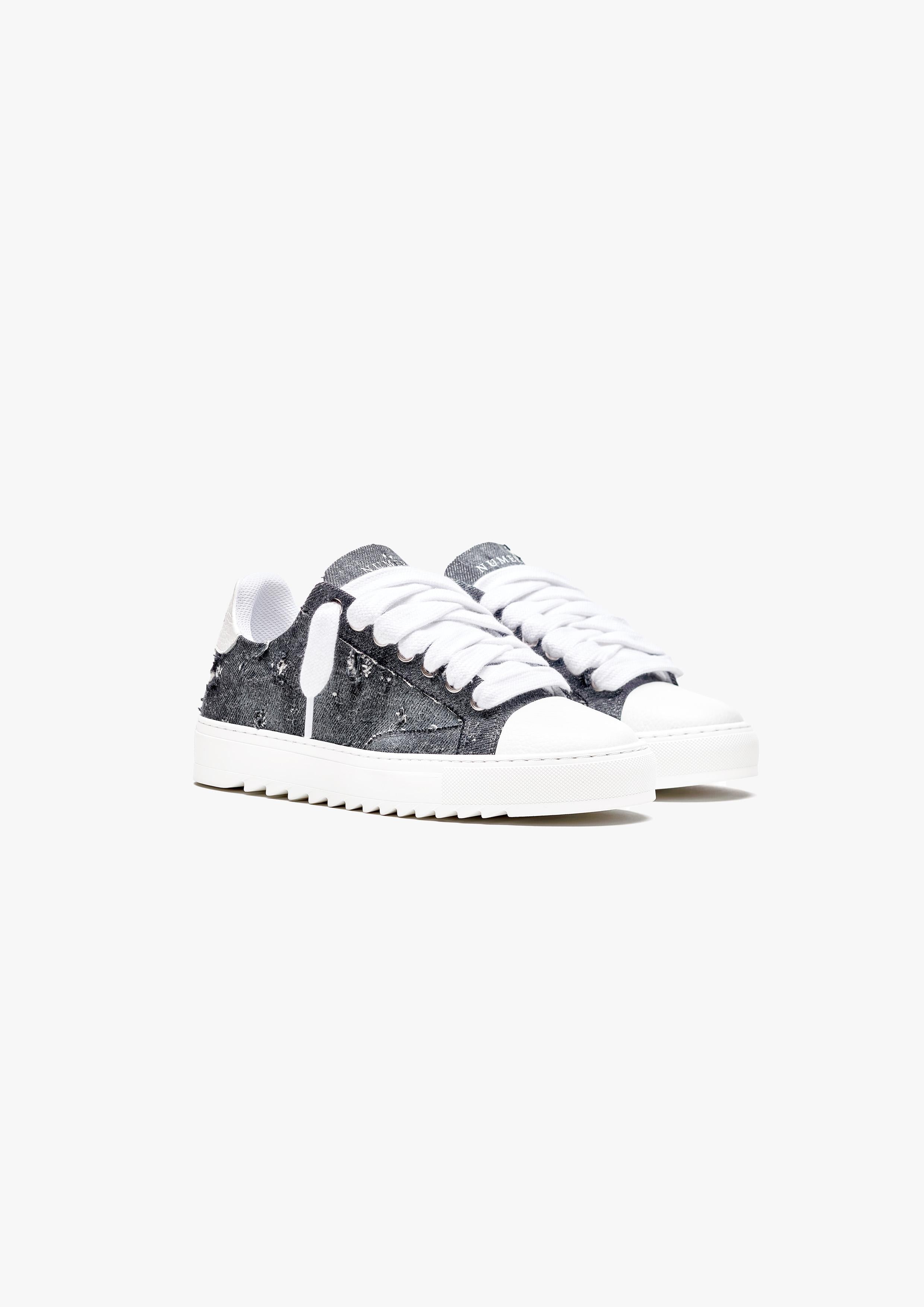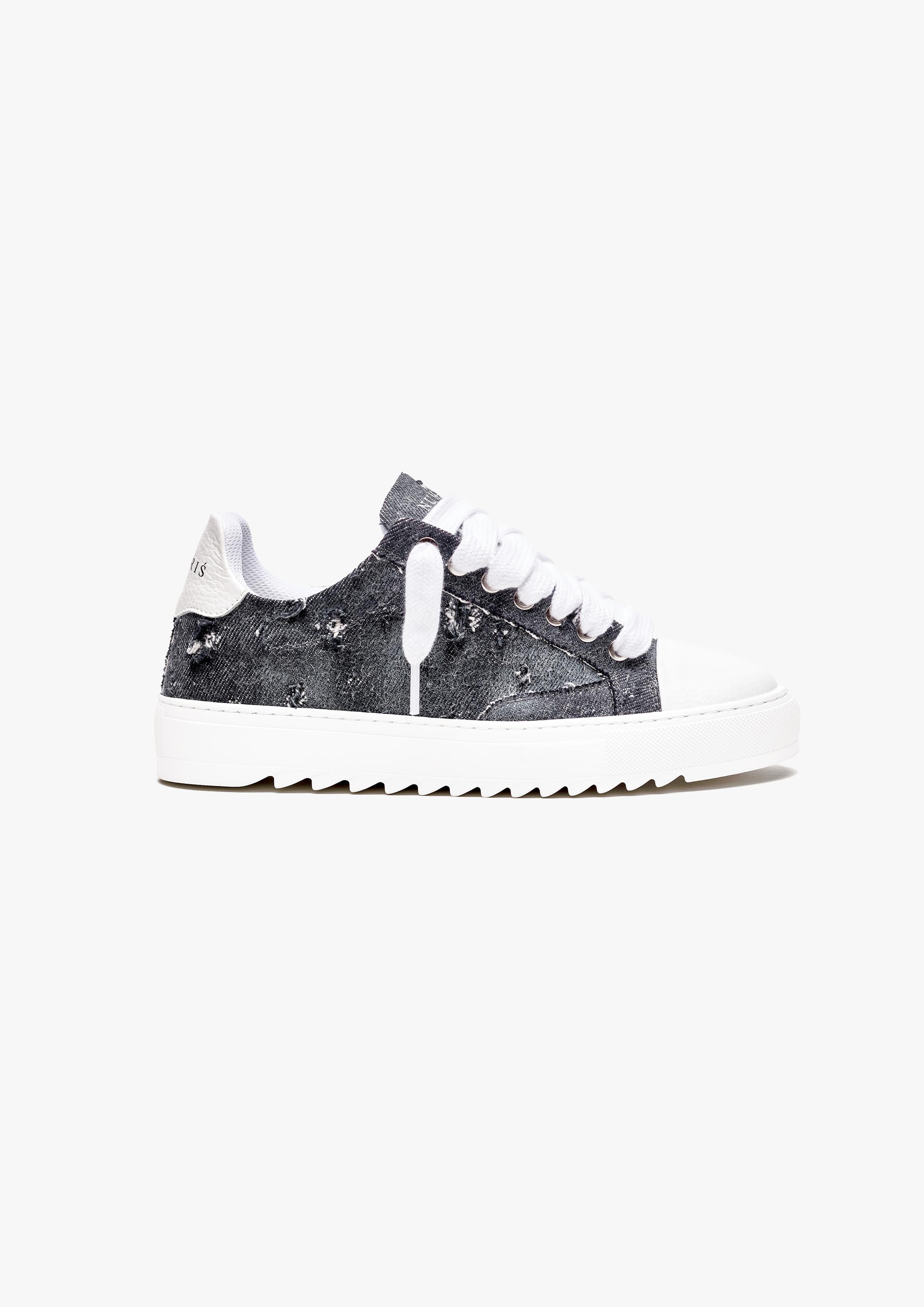 Realizzata con una meticolosa attenzione ai dettagli, la sua tomaia in denim lavato a mano e su misura è il risultato di un processo di sviluppo approfondito. Ci è voluto tempo per perfezionare il lavaggio ideale, affinando con cura le tecniche per ottenere l’effetto "thrashed" caratteristico — garantendo un equilibrio tra carattere e indossabilità. Questa cura dei dettagli fa sì che nessun paio presenti mai lo stesso motivo consumato, rendendo ogni scarpa un’opera d’arte unica. A completare questa caratteristica distintiva, il puntale in pelle bianca testurizzata dona un tocco di raffinatezza al design. All’interno, la scarpa è dotata di un collarino imbottito che migliora l’esperienza complessiva di utilizzo. I dettagli finali includono il nostro marchio distintivo Numeriś sul tallone, accompagnato dallo slogan che definisce lo stile: «Il design è un pensiero reso visibile».