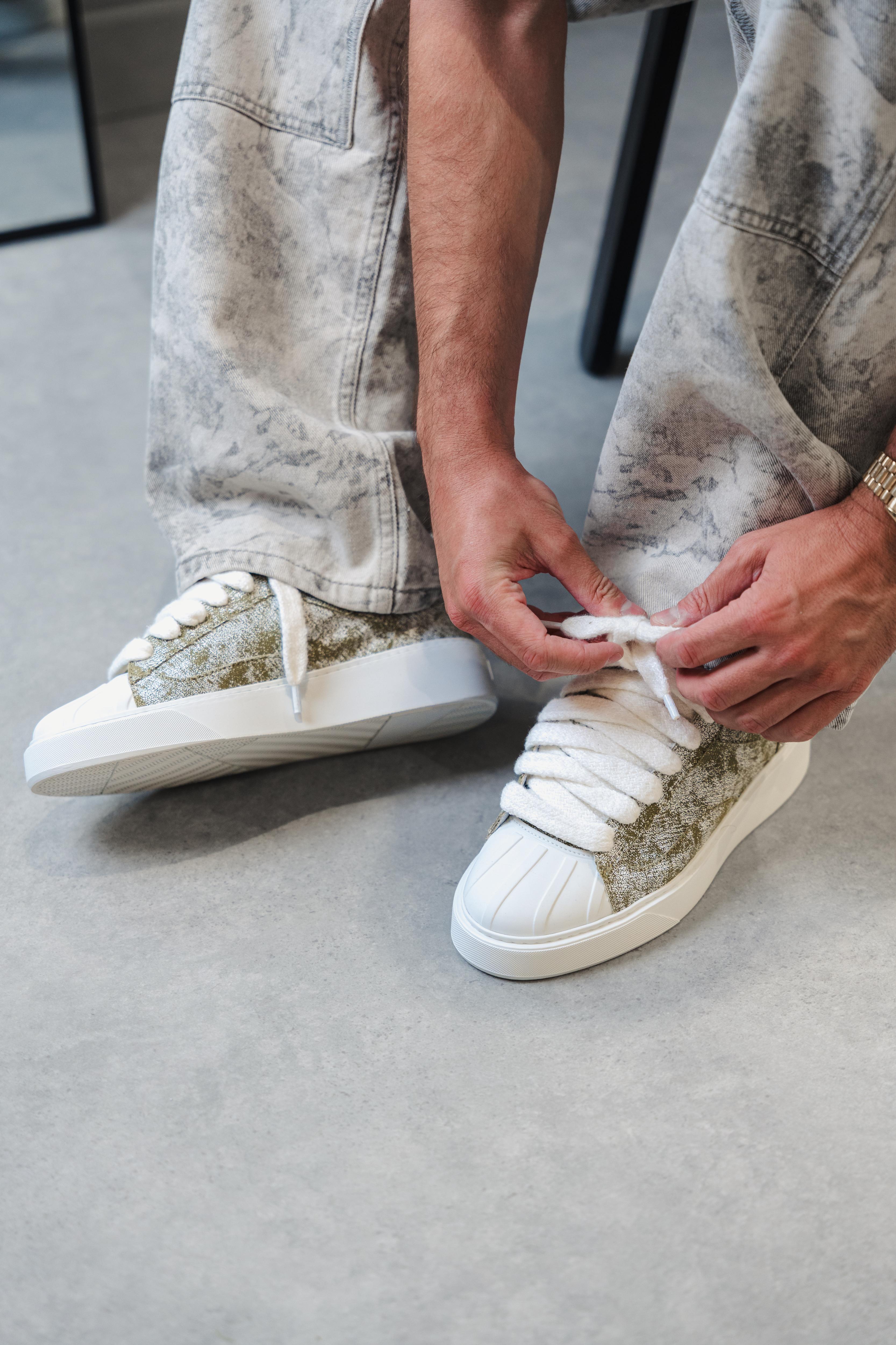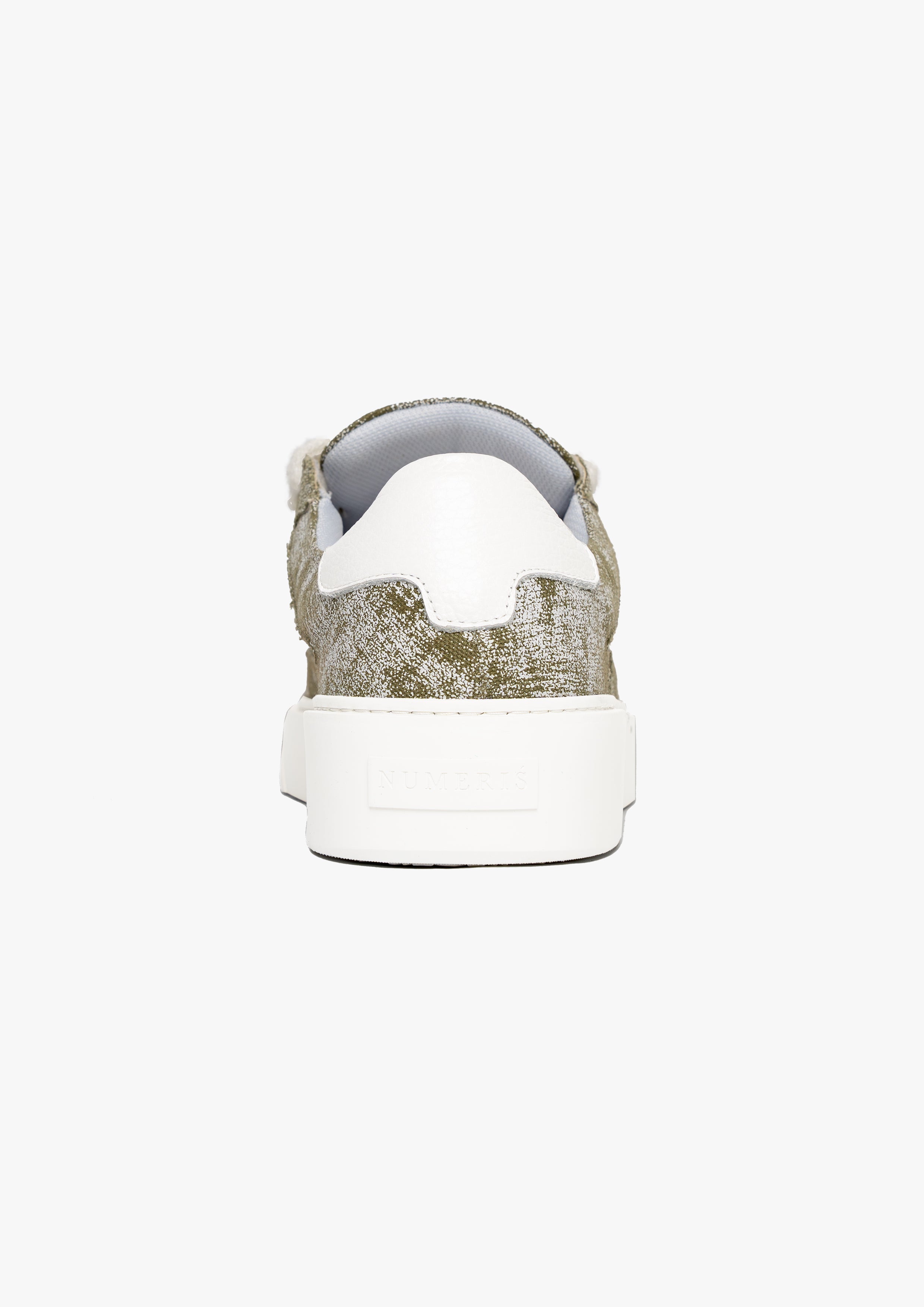 La couleur Kaki présente une tige texturée kaki sur toute la surface, contrastée par un empiècement talon en cuir italien. Dotée de lacets en mohair larges de 10 mm, chaque paire est douce au toucher et légèrement texturée. Le logo Numeris est positionné sur la languette, créant une esthétique épurée. Le tout repose sur notre semelle spécialement conçue, développée exclusivement pour l'Eclipse - pour soutenir l'embout en caoutchouc.