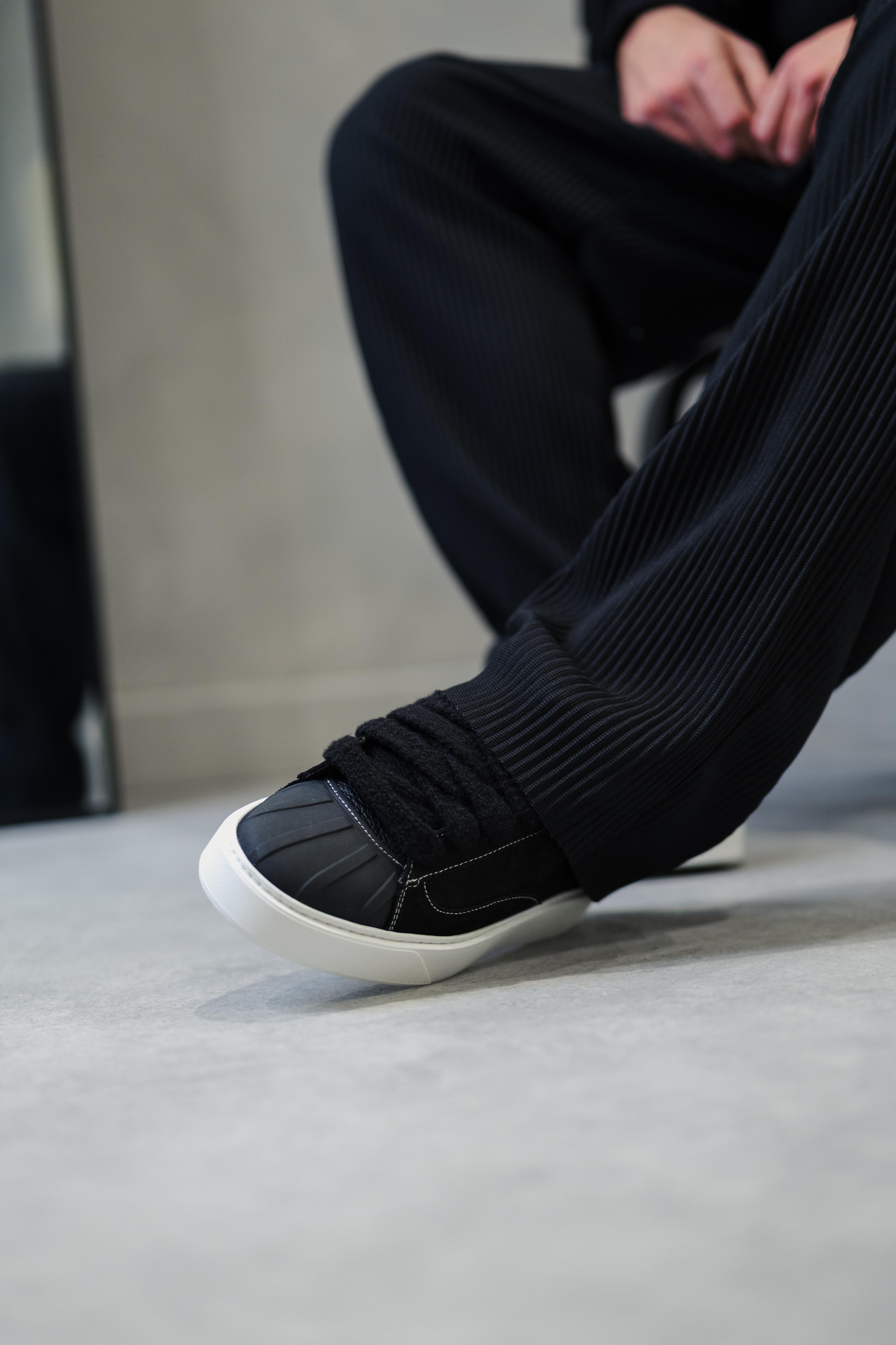 Présentation de l'Eclipse. S'inspirant discrètement des formes épurées des chaussures de basketball des années 1960, réinterprétées à travers un prisme moderne et sculptural. Son élément distinctif, l'embout en caoutchouc en forme de main, a été méticuleusement développé pendant des mois pour obtenir une silhouette qui équilibre structure et design. Conçu pour s'intégrer parfaitement dans le flux de la tige, ses courbes et ses crêtes ont été façonnées à travers d'innombrables itérations afin d'atteindre une forme à la fois moderne et ancrée dans l'héritage.