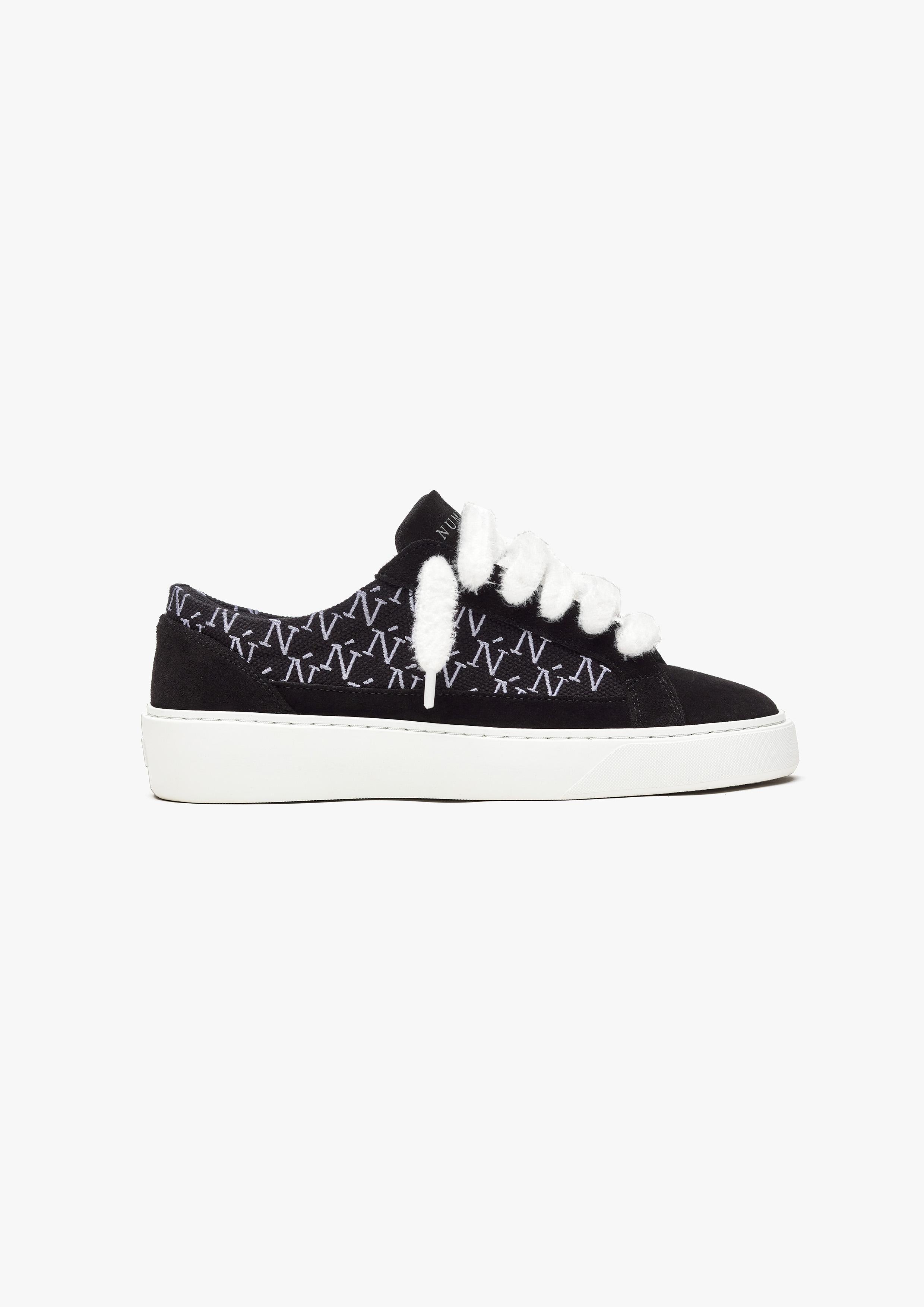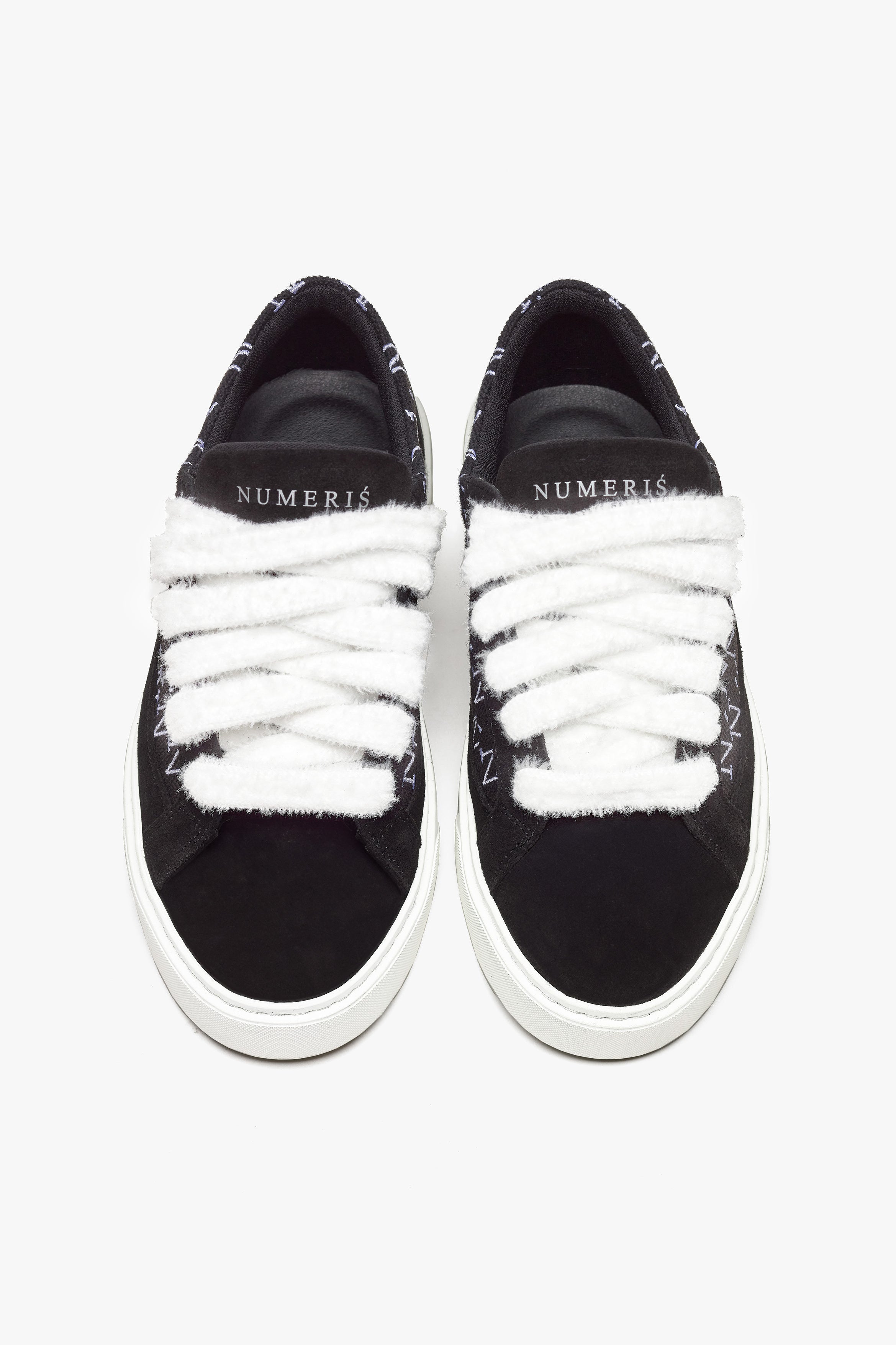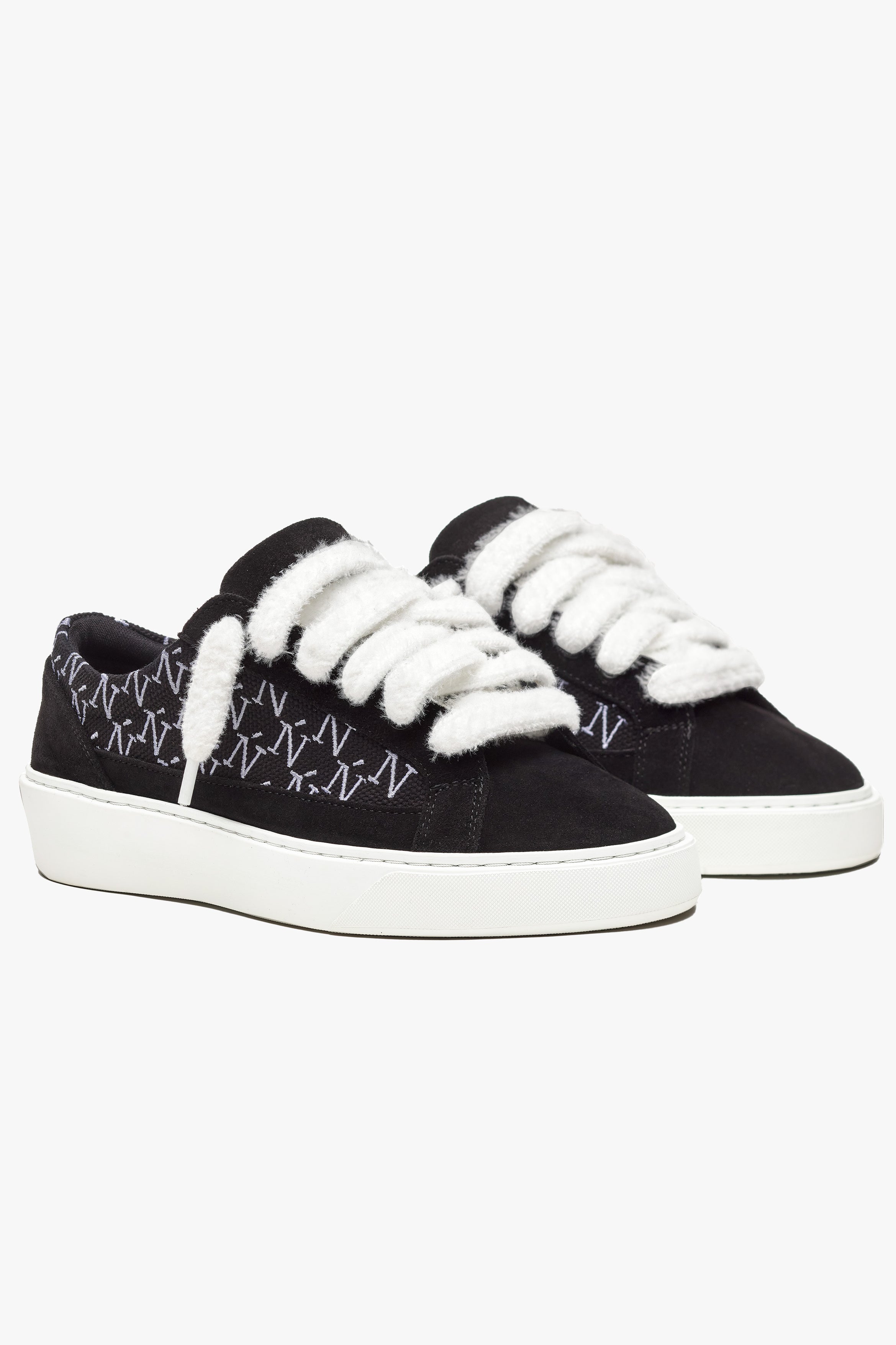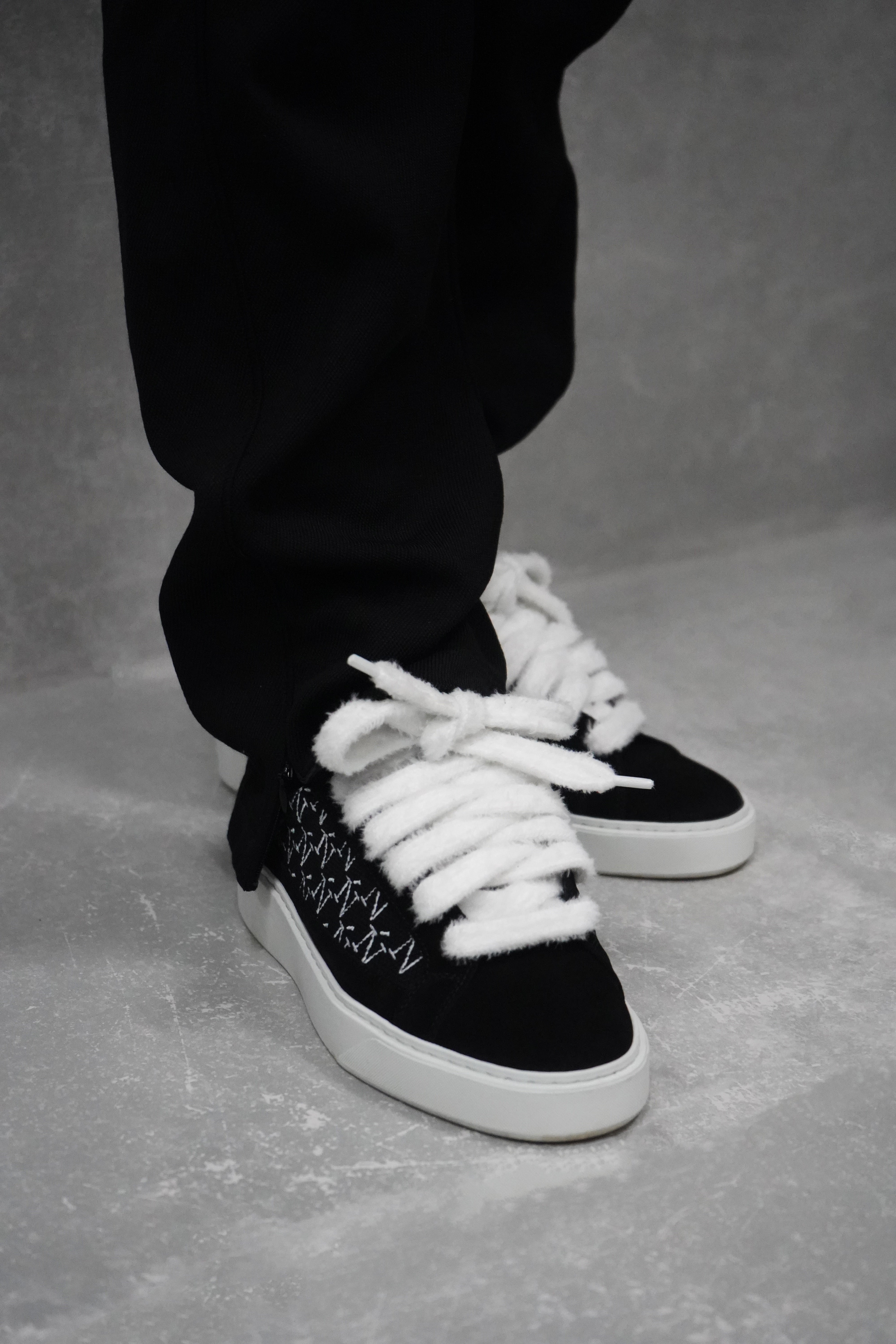 La sneaker Sigńet est dotée de daim noir italien, de lacets blancs moelleux de 20 mm, de panneaux latéraux en toile noire accompagnés de notre élégant logo monogramme Ń brodé à la main. L'intérieur de la sneaker est doté d'une doublure de col noire offrant un confort inégalé. La tige repose parfaitement sur notre toute nouvelle semelle en caoutchouc complexe, fabriquée exclusivement pour Sigńet. Notre logo argenté distinctif est positionné sur la languette.